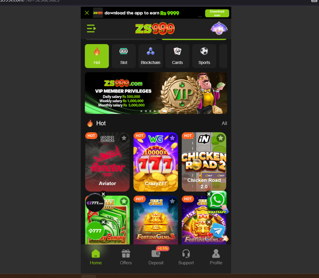 The ZS999 game is created for users who want to discover online casino-style games while starting with small deposits. It promises to offer real cash rewards, easy withdrawals, and a simple user experience.
